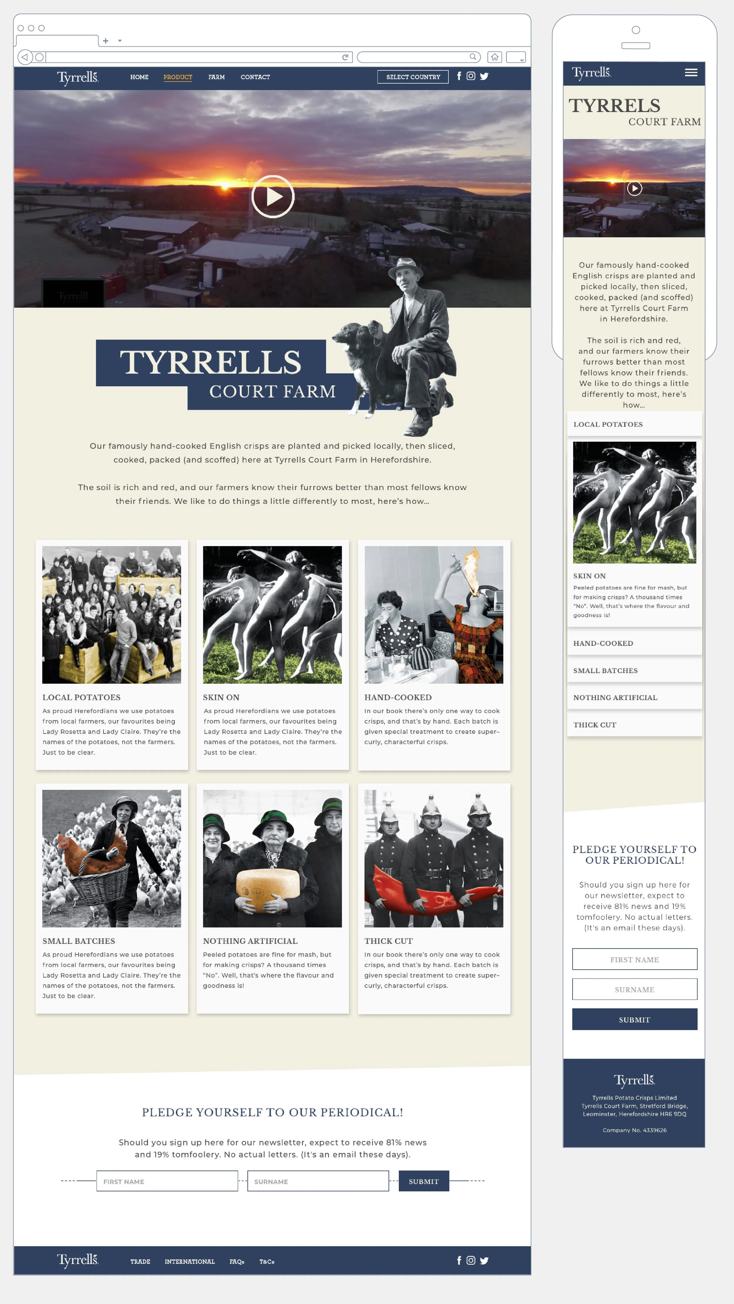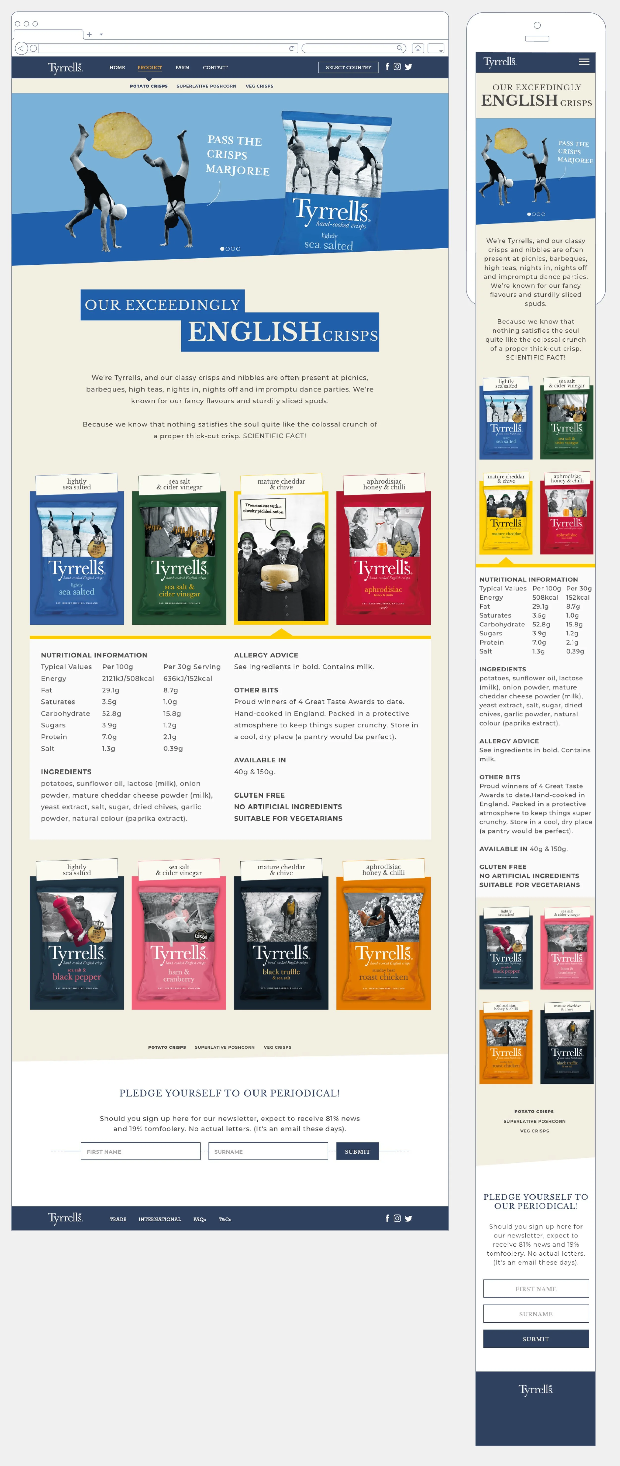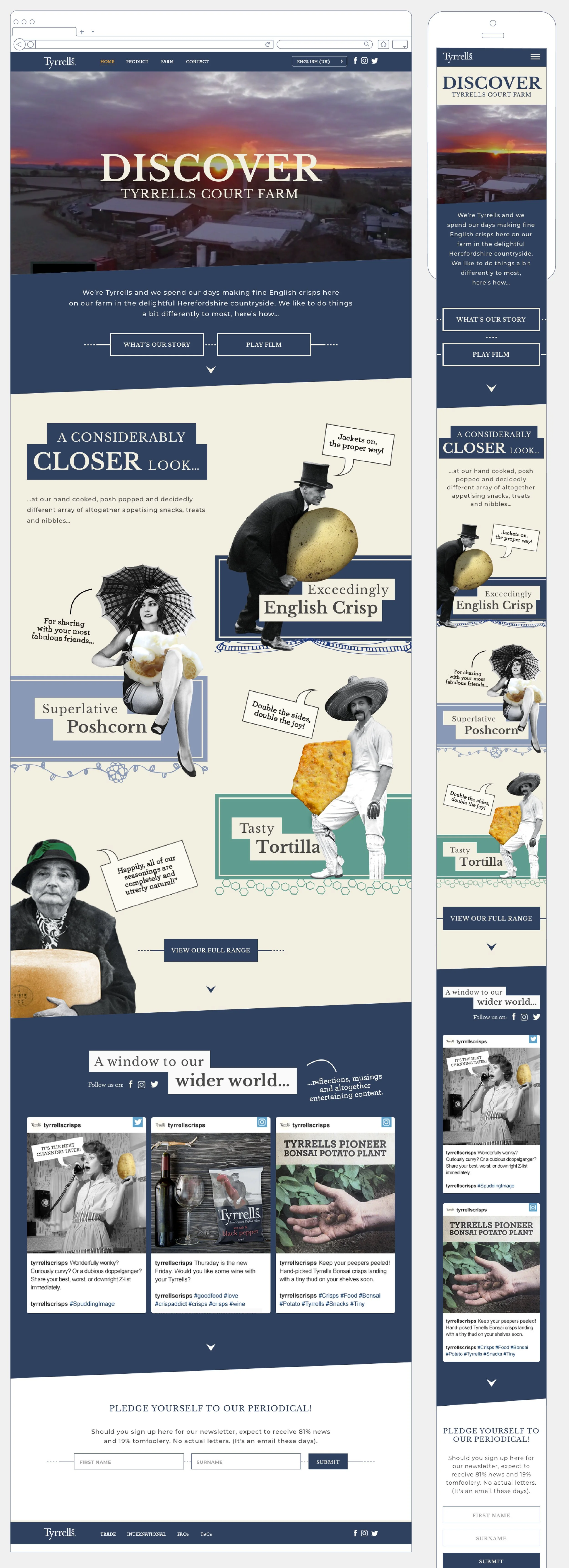 Tyrells was just becoming a household brand name and never had a responsive site or social media consistency. All branding was created for their packaging without thinking of how this could translate digitally. A look and feel was created to unify the brand with the various touch points within the business.